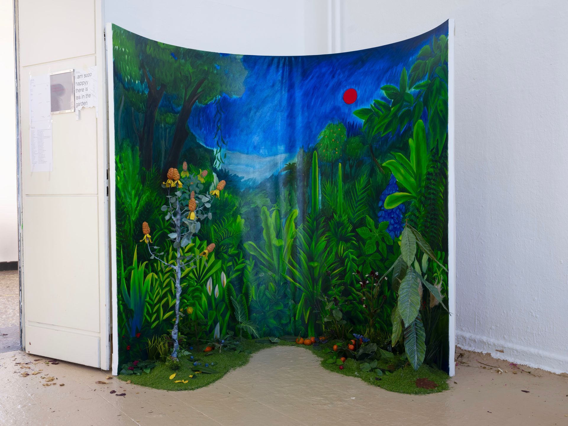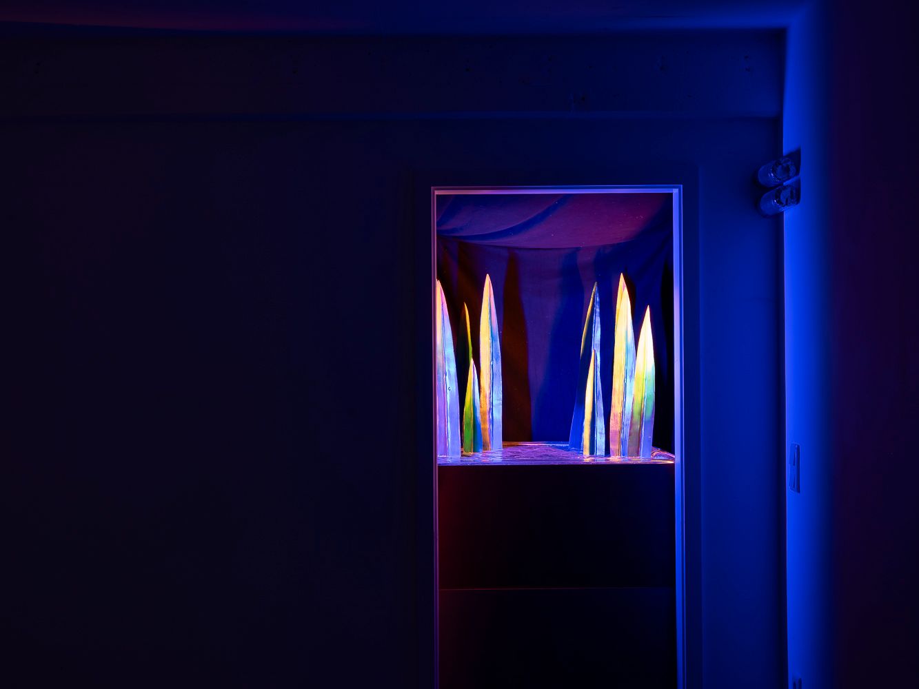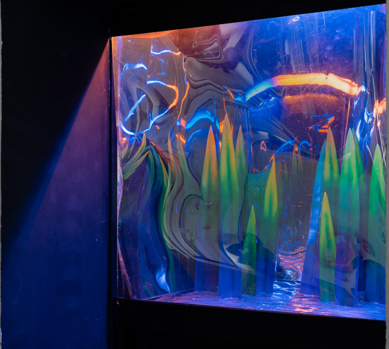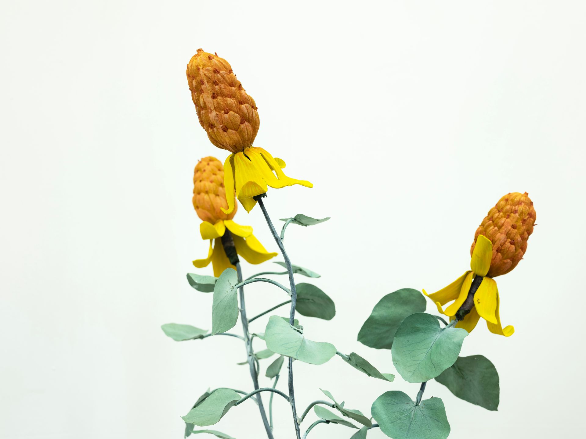 PET, acrylic ink, steel, wire, epoxy, polymorph, acryl fibre, shrink tubing, polyester, crepe paper